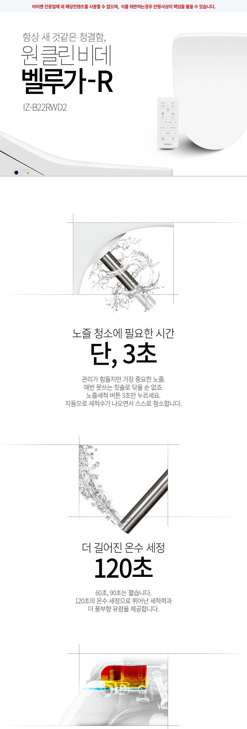 > 아이젠비데 벨루가리모컨 원클린비데 IZ-b22rwd2 3년무상AS